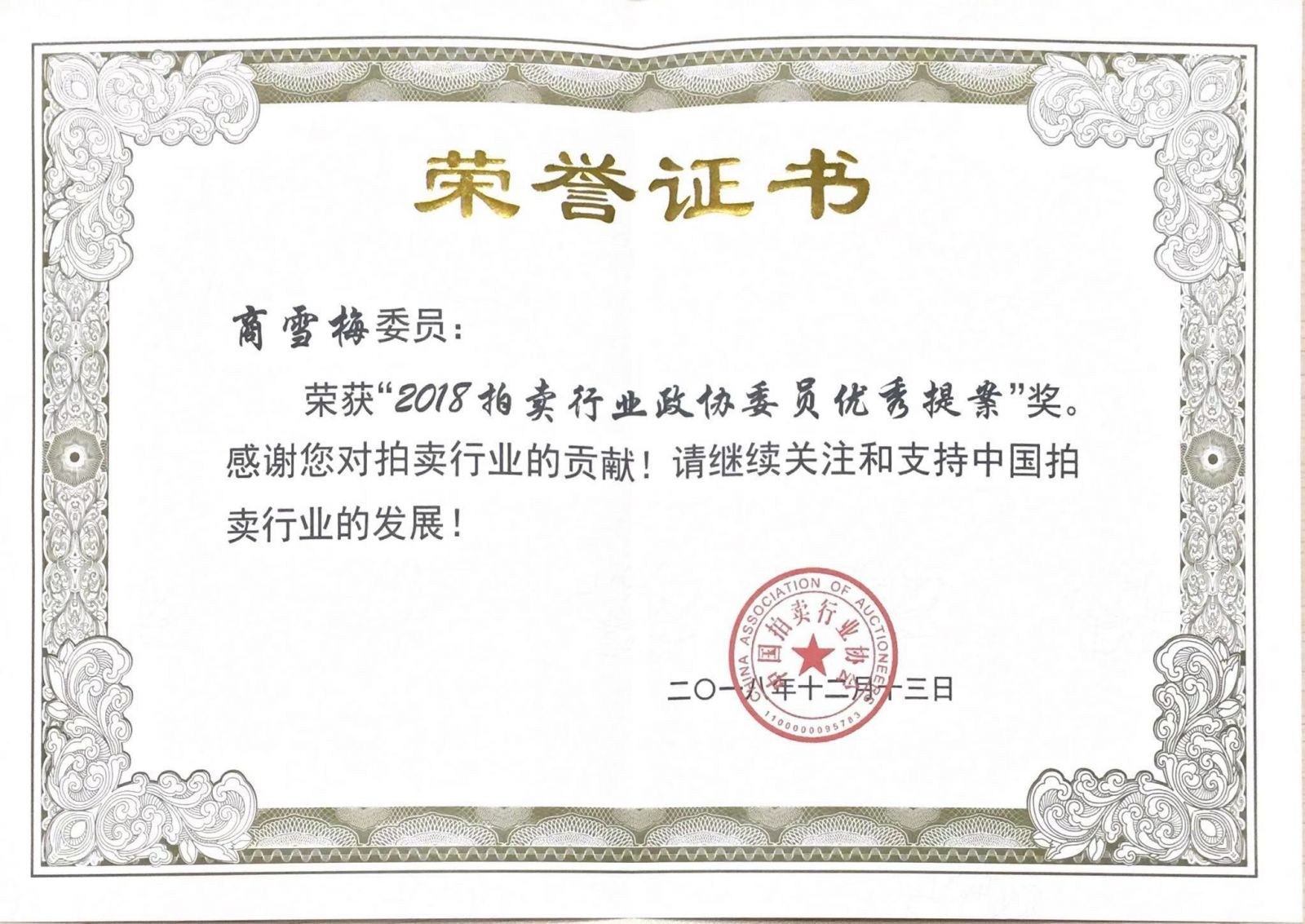 13日,董事長商雪梅作為省政協委員、總經理位琳作為企業所在區政協委員參加了2018年拍賣行業“兩會”代表、委員座談會。商雪梅撰寫的提案《關于破解“執行難”,充分發揮拍賣機構網絡司法拍賣線下輔助職能的建議》榮獲“2018拍賣行業政協委員優秀提案獎”。