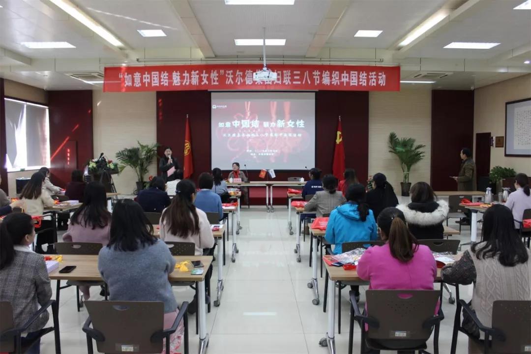 三八婦女節來臨之際,為豐富女職工的文化生活,沃爾德集團婦聯組織開展了以“如意中國結,魅力新女性”為主題的編織中國結活動。活動邀請到中國結藝傳承人、濟南市十大民間藝術家、濟南市婦聯巾幗建功標兵、三八紅旗手尹崇芹老師進行教學,集團婦聯主席、辦公室主任李群及30多位女職工參加活動。
