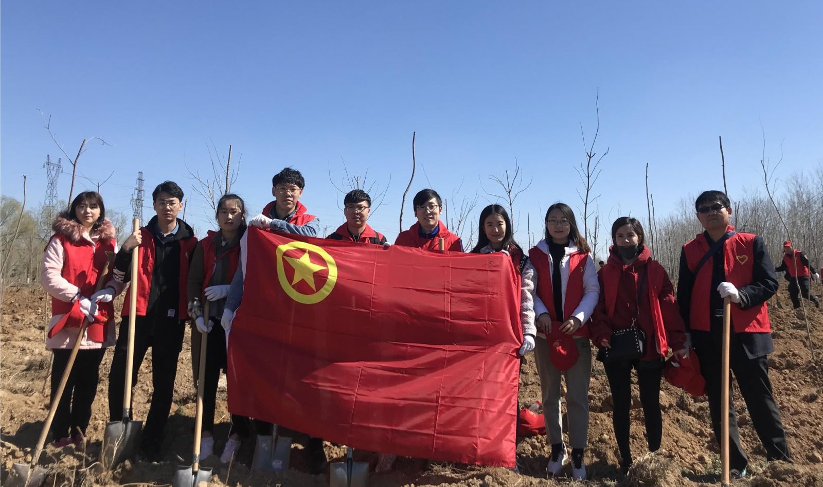 陽光正好,微風(fēng)不燥。大家熱情高漲、干勁十足、揮鍬鏟土、填樹入坑、堆起圍堰、提桶澆水,現(xiàn)場一片熱火朝天的勞動景象。經(jīng)過大家的努力,百余株小樹苗在土地中萌發(fā)生機。團員青年紛紛表示,能夠以自己的實際行動參與到植樹增綠中來,感覺非常有意義,希望自己親手栽下的樹苗能夠茁壯成長。忘卻疲憊,滿滿的都是喜悅和成就感,與自己載種的小樹合影,保留幸福瞬間。