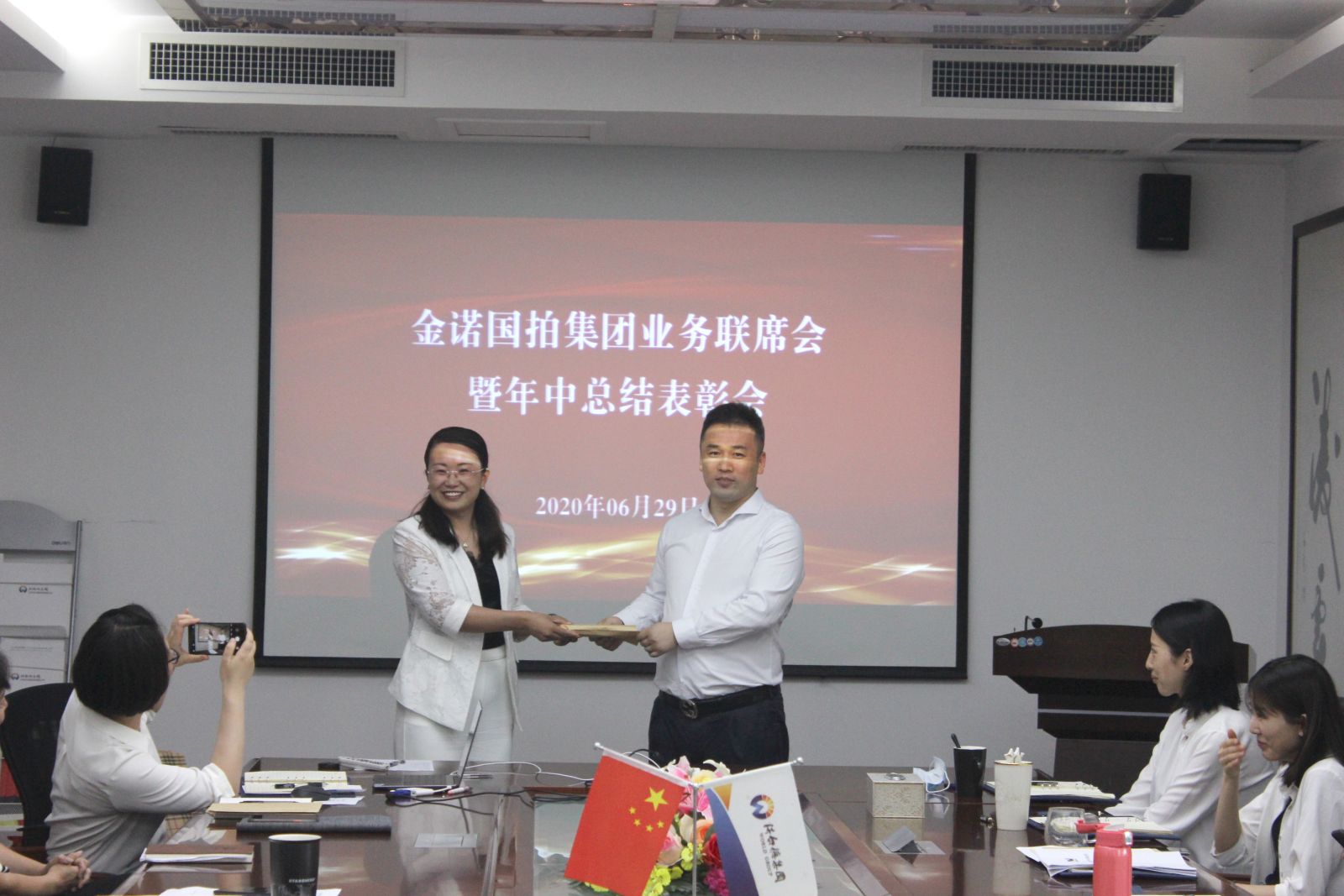 6月29日,金諾國拍集團成功召開“雙月度業務聯席會暨年中總結表彰會”。本次會議由總裁位琳主持,董事長商雪梅及全體駐濟管理人員參加。