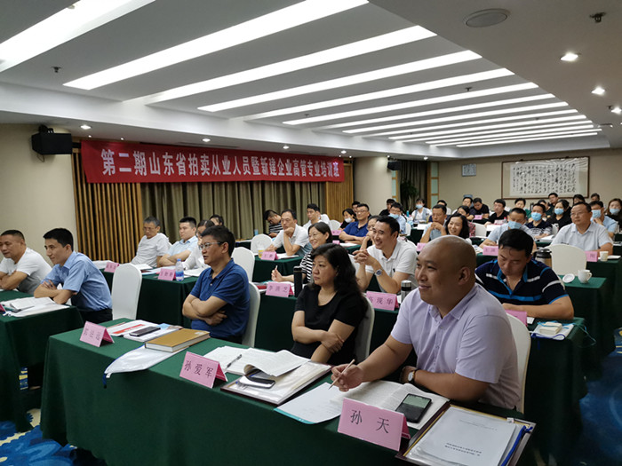 2020年8月18-21日,第二期山東省拍賣從業人員暨新建企業高管培訓班在濟南良友富臨大酒店成功舉辦。省商務廳流通業發展處處長廉波,中拍協副會長、省拍協會長李偉,上海拍協政策研究中心執行主任、上海國際商品拍賣有限公司監事、高級顧問范干平出席了開班儀式,來自全省各拍賣企業共計50人參加了培訓。省拍協副秘書長熊永梅主持開班儀式。