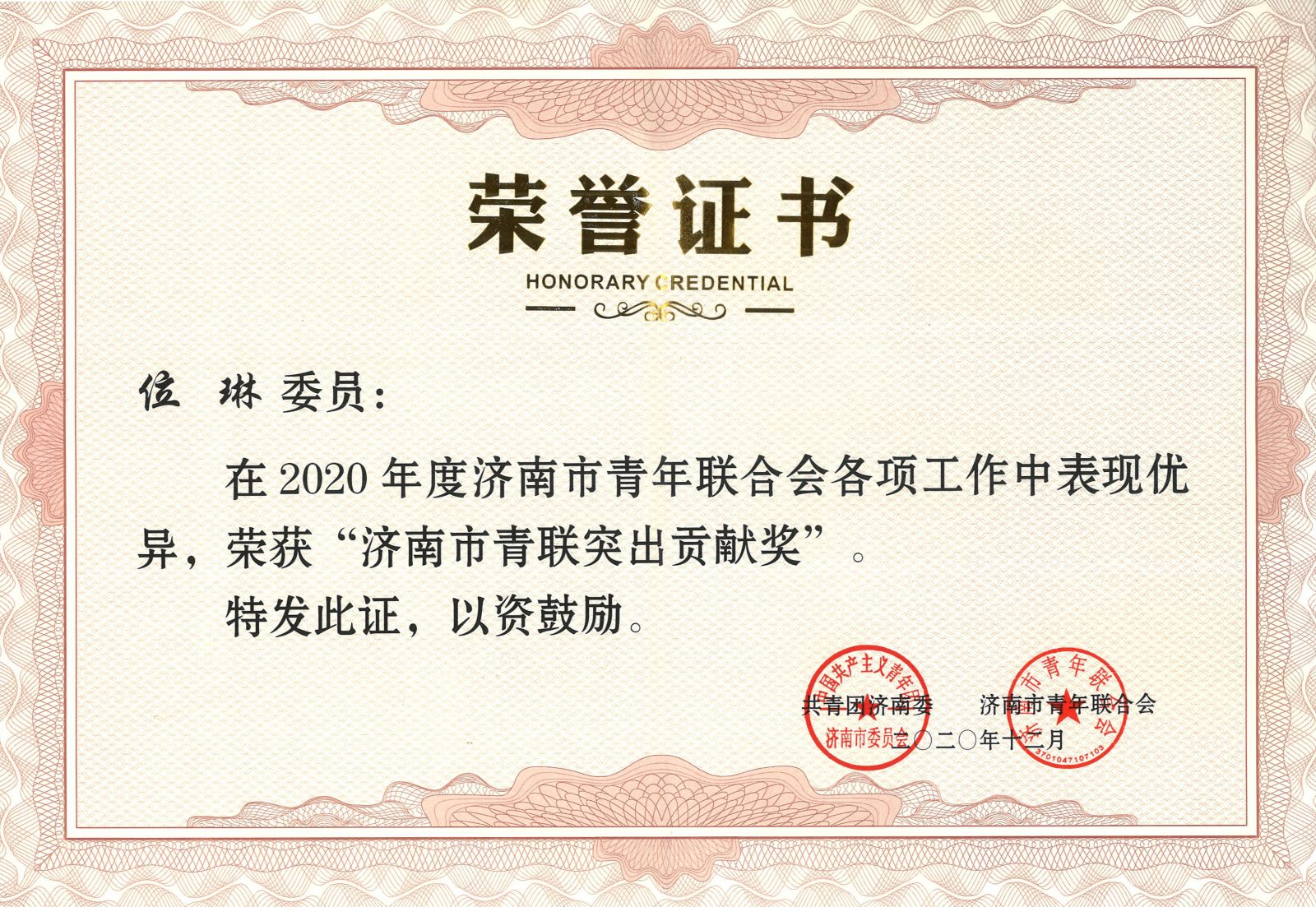 會上表揚(yáng)了2020年濟(jì)南市青聯(lián)杰出成就獎、突出貢獻(xiàn)獎、優(yōu)秀青聯(lián)委員、青聯(lián)優(yōu)秀秘書長、青聯(lián)活躍界別組。金諾國際集團(tuán)總裁位琳在2020年度濟(jì)南市青年聯(lián)合會各項工作中表現(xiàn)優(yōu)異,榮獲“濟(jì)南市青聯(lián)突出貢獻(xiàn)獎”。