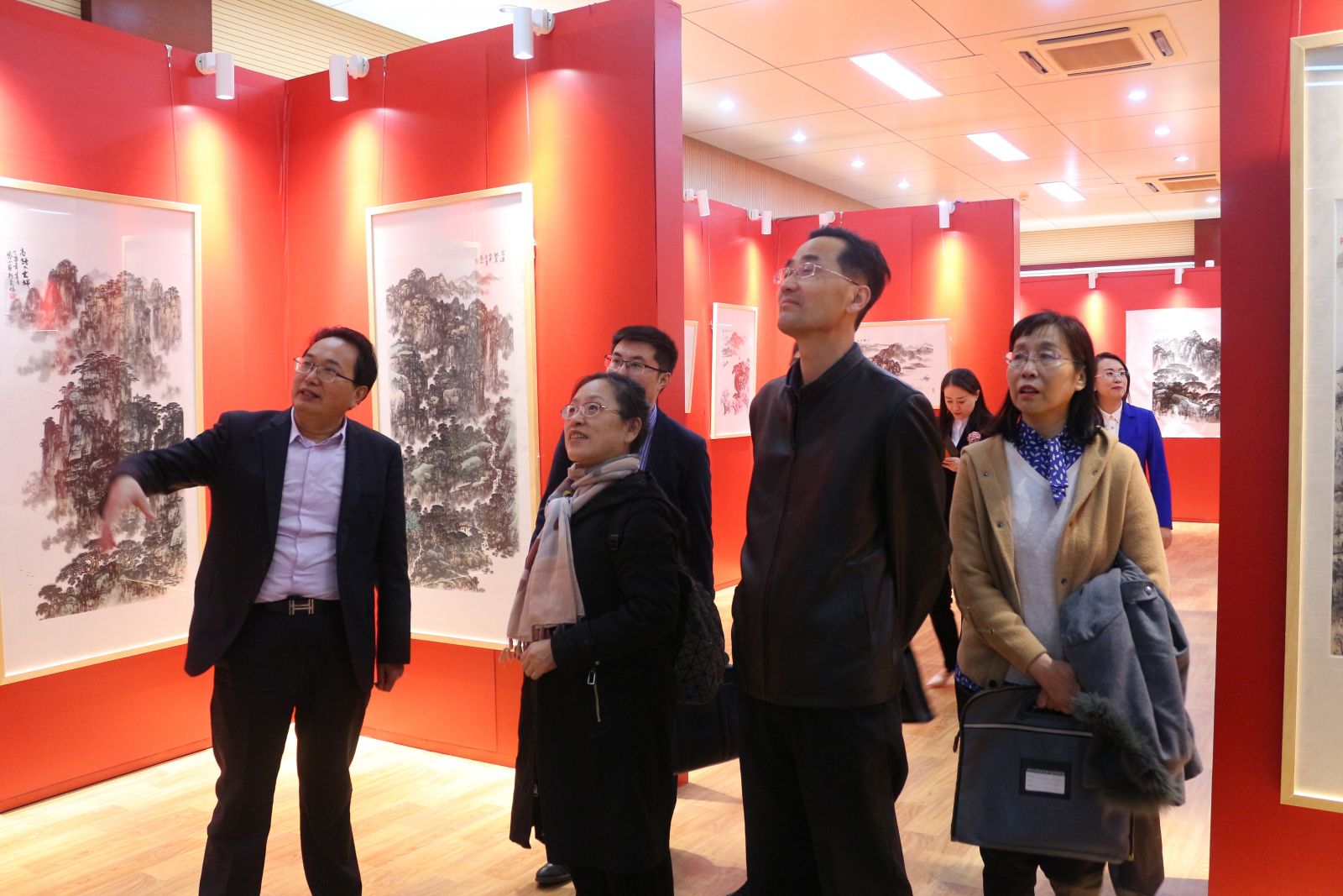 在董事長林擘的帶領下,市場監管局一行先后參觀了沃爾德集團子公司六大板塊、自貿試驗區濟南片區文化藝術品展示交易中心書畫展廳、云展廳、古玩雜項展廳及集團黨建、統戰、群團工作情況,重點介紹了集團拍賣板塊及“金拍網”線上交易平臺發展情況。