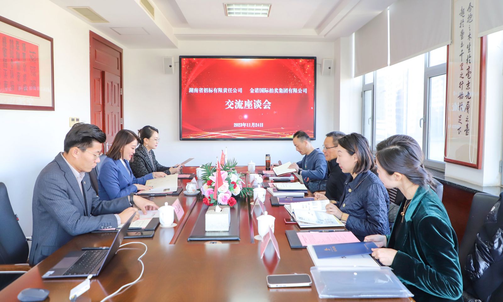 交流互鑒拓思路,攜手共進促提升。為進一步增進了解,促進交流,建立合作,相互學習拍賣行業及相關領域發展中的先進理念和成功經驗,構建拍賣企業間互通互聯、互學互鑒、共促共進的發展局面。2023年11月24日上午,湖南省招標有限責任公司董事長劉成建一行蒞臨金諾國拍集團考察交流。湖南省招標有限責任公司副總經理譚娜、綜合辦公室(人力資源部)主任譚創、湖南省拍賣行有限責任公司執行董事孫艷陪同考察。沃爾德集團總裁、金諾國拍集團董事長商雪梅,金諾國拍集團總裁位琳,金諾國拍集團副總裁主金坤陪同接待并參與座談交流。