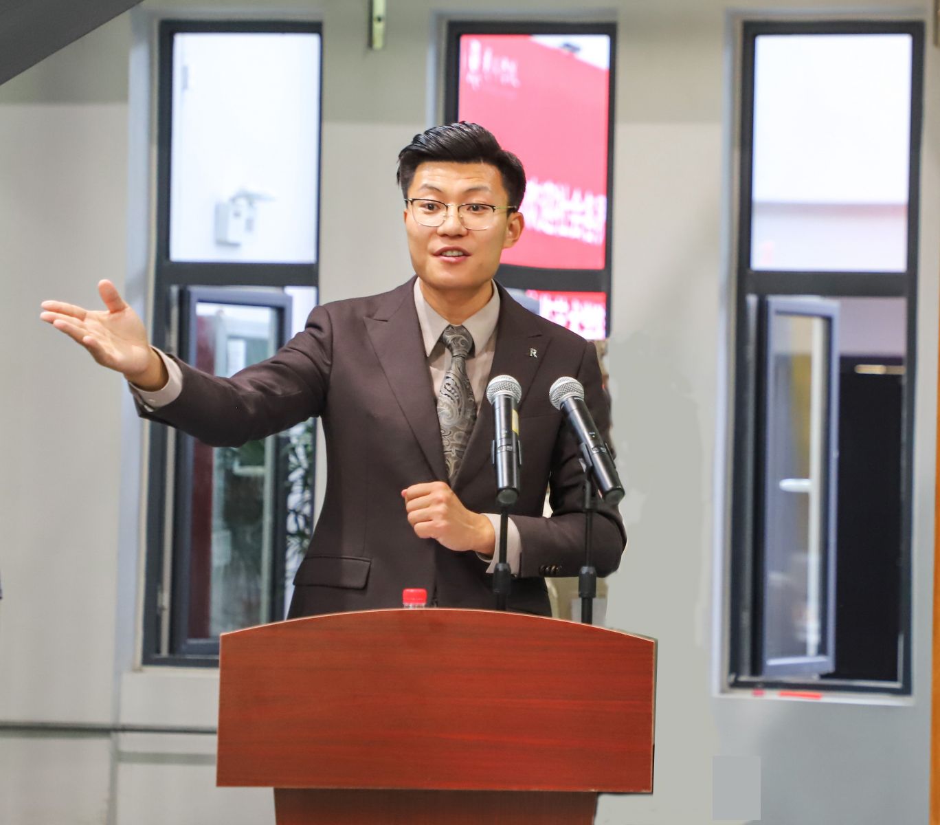 省新聯會副會長、沃爾德集團總裁、金諾國拍集團董事長商雪梅致辭。她表示,作為山財大99級校友非常榮幸參加山財大藝術學院第十屆藝術品拍賣會。這場競拍會的作品不僅是藝術學院優良的教學成果,也是同學們幾年藝海作舟的良好展現。本次新階層走進山財大藝術學院活動,定位為“新階層·藝術行”助教助學公益活動,新的社會階層人士作為社會發展的重要力量,始終關注著文化藝術的繁榮與發展。本次拍賣會的舉辦,為藝術學院學生提供了一個展示才華、交流學習的平臺,匯聚了社會各界力量、共同推動文化藝術事業發展。同時沃爾德集團作為山財大藝術學院校企合作單位,將深化搭建校企合作平臺,將合作走深走實,實現校企合作共贏!