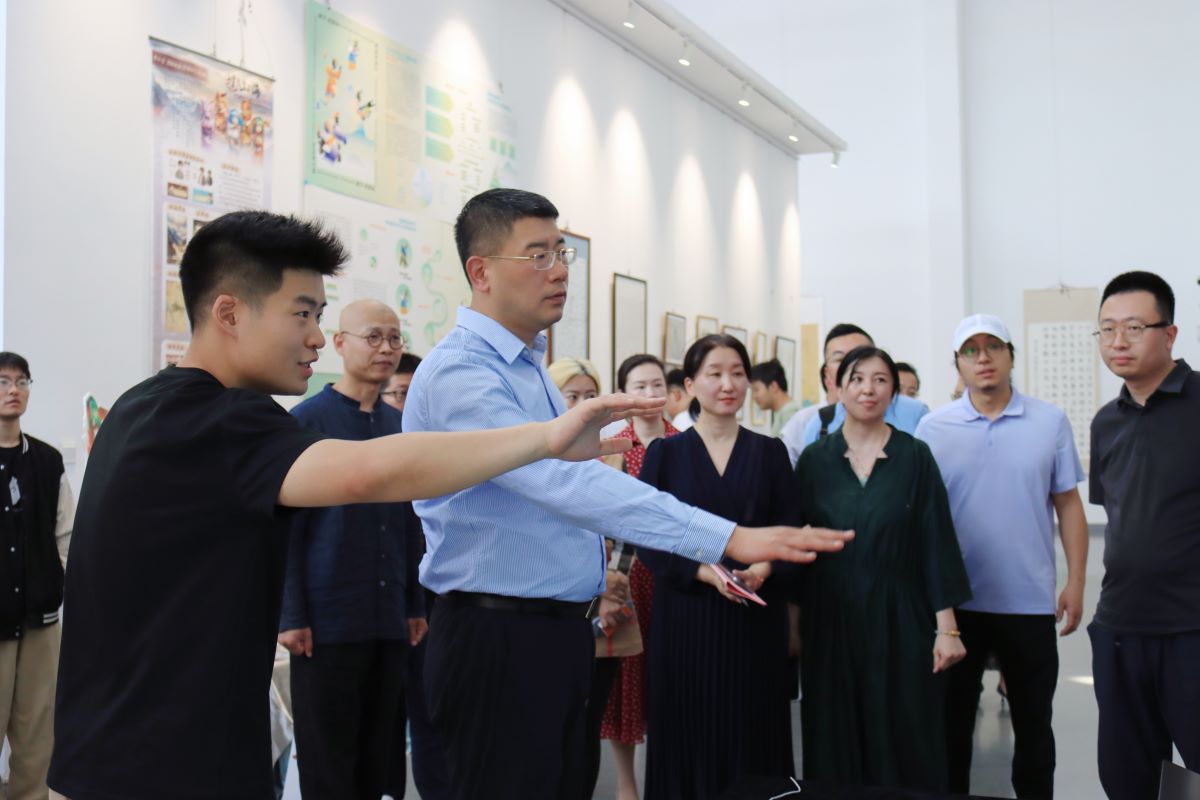 劉旻航代表學(xué)校對畢業(yè)展的舉行表示祝賀,向出席活動的合作共建單位表示熱烈歡迎,對藝術(shù)學(xué)院的相關(guān)工作表示充分肯定。他講到,藝術(shù)學(xué)院堅持特色辦學(xué),三個本科專業(yè)全部獲評省級一流本科建設(shè)專業(yè),改造完成并遷入新院址,辦學(xué)條件與辦學(xué)水平不斷提升,服務(wù)學(xué)校和社會發(fā)展的能力不斷增強,海岱美術(shù)館開館以來,陸續(xù)承接校內(nèi)外展覽活動,在文化育人、教學(xué)、會展、陳列、實踐、對外交流等方面的作用日益凸顯;學(xué)院堅持OBE教育理念,積極推進教學(xué)改革,修訂完善培養(yǎng)方案和教學(xué)大綱,全面推廣課程工作室制,開設(shè)的實景寫生、作品拍賣、藝術(shù)調(diào)研、專業(yè)實習(xí)、課程國際化等實踐類課程獨具特色,全面提升了學(xué)生的實踐能力;2023年,學(xué)院作為核心單位獲批山東省普通本科高校重點領(lǐng)域教學(xué)改革試點項目“111計劃”立項,“藝術(shù)與科技實習(xí)基地”獲批山東省普通高等學(xué)校示范性實習(xí)(實訓(xùn))基地,進一步拓展了實踐教學(xué)平臺;希望藝術(shù)學(xué)院加強與社會組織和企事業(yè)單位的合作共建,為培養(yǎng)全面發(fā)展的藝術(shù)類實踐人才貢獻力量。