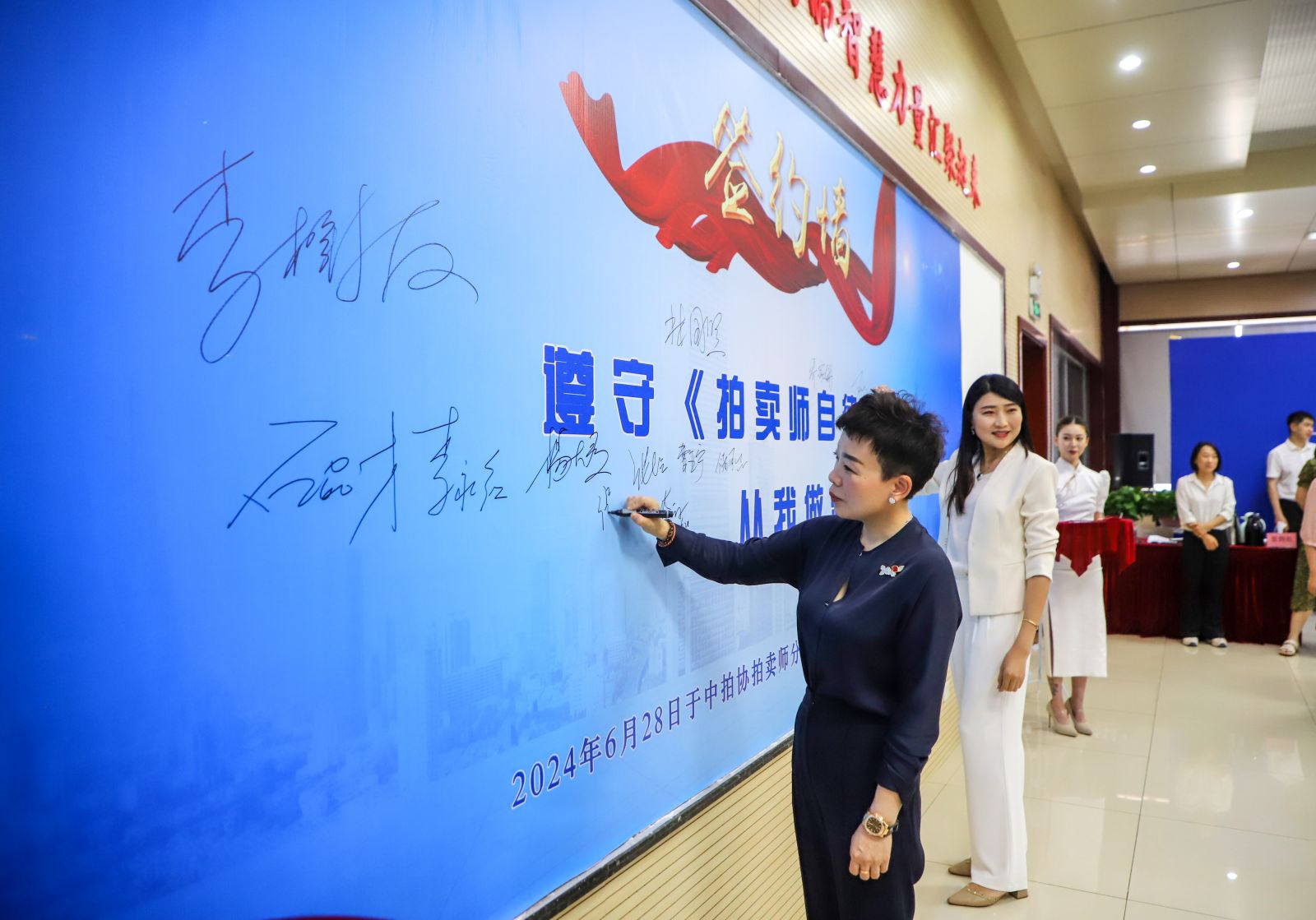 參會(huì)拍賣(mài)師現(xiàn)場(chǎng)進(jìn)行簽約。這是對(duì)拍賣(mài)行業(yè)的敬畏,也是一名拍賣(mài)師的莊嚴(yán)承諾。拍賣(mài)師們紛紛表示將積極響應(yīng)號(hào)召,嚴(yán)格遵守《拍賣(mài)師自律公約》,履行拍賣(mài)師的職責(zé),為拍賣(mài)行業(yè)的健康發(fā)展貢獻(xiàn)力量。