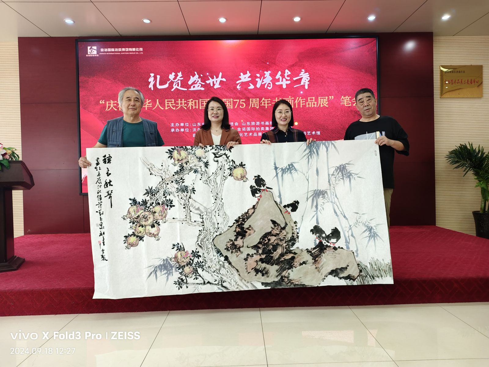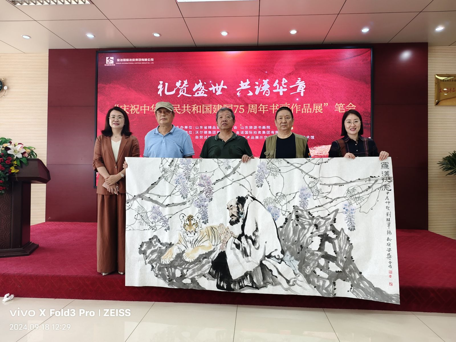 七十五載風雨兼程,七十五載砥礪前行,為慶祝中華人民共和國75周年華誕,9月18日,山東省精品旅游促會在省旅促會副會長單位沃爾德集團展開了一場精彩書畫筆會。活動由省委原副秘書長、山東省精品旅游促進會會長杜文彬帶隊,著名書畫藝術家梁文博、劉玉泉、蕭維永、戴月、韓英偉、趙英水、馬林春、韓新濰、劉勝軍、郭執銓、孫華進、董廷新等參加,省旅促會副會長、沃爾德集團董事長林擘,沃爾德集團總裁、金諾國拍集團董事長商雪梅,金諾國拍集團總裁位琳陪同。