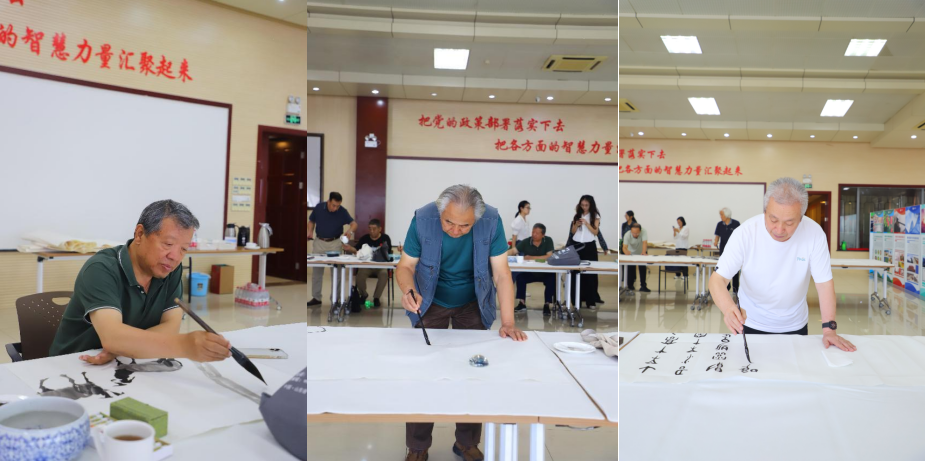 活動現場洋溢著濃郁的喜慶氣氛,藝術家們懷著強烈的責任感,即興揮毫潑墨,創作了巨幅國畫《羅漢伏虎》、《秋色秋聲》、《盛世華章》和《江山多嬌》等近三十幅作品,有國畫有書法,有的展現了祖國的壯麗山河,有的描繪了人民的幸福生活,有的反映了時代的偉大變遷,充分展示了書畫藝術家高超的藝術技能及深厚文化底蘊,體現了書畫藝術家們不忘初心、勇于當擔、甘于奉獻的精神,一幅幅精美的畫作抒發了對祖國母親的熱愛和祝福,它們不僅是藝術家們才華的展示,更是我們對祖國深深眷戀和美好憧憬的真情流露。現場不時爆發熱烈掌聲,贏得在場觀眾喝彩。