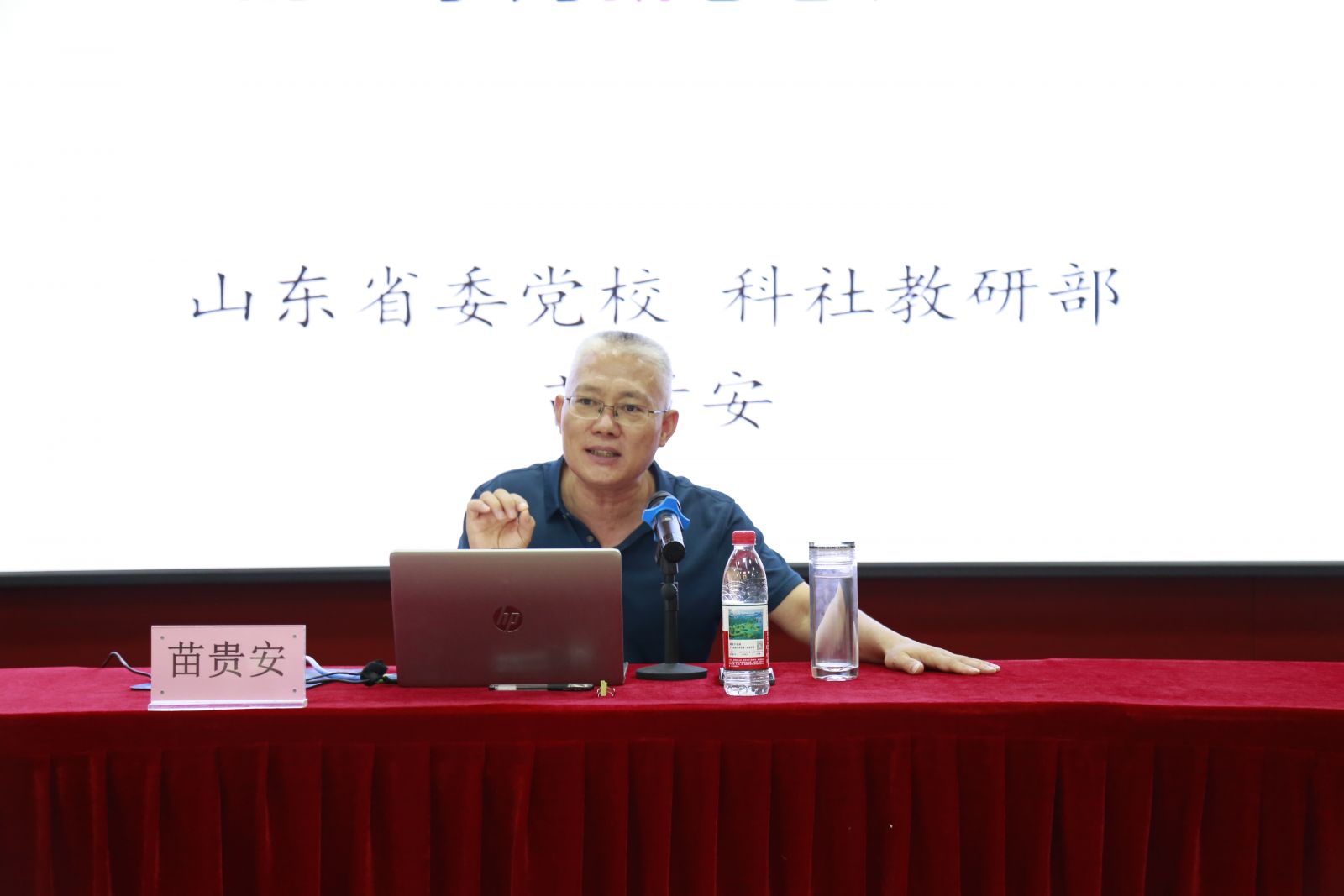 山東省委黨校科社教研部副教授苗貴安作《習(xí)近平總書記關(guān)于全面深化改革的一系列新思想、新觀點(diǎn)、新論斷》的講解培訓(xùn)。
