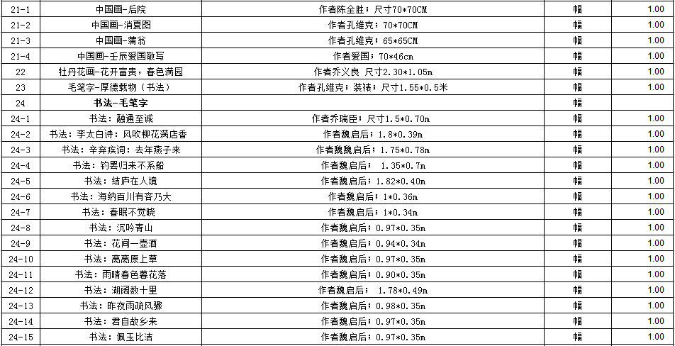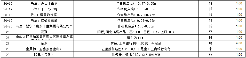 存貨物品一宗(包括木質(zhì)雕刻類(lèi)、玉石擺件類(lèi)、字畫(huà)類(lèi)等),詳見(jiàn)清單。參考價(jià)225.2萬(wàn)元,保證金30萬(wàn)元。